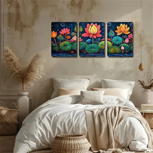 3pcs Colorful Lotus Flowers Triptychs Perfect Wall Art Set Canvas Framed 40x60cm - High Quality Print 100% Australian Made Wall Canvas Ready to Hang