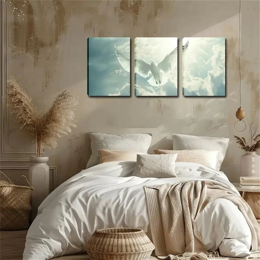 3pcs White Doves Flying Scenes Simple Perfect Wall Art Set Canvas Framed 40x60cm - High Quality Print 100% Australian Made Wall Canvas Ready to Hang