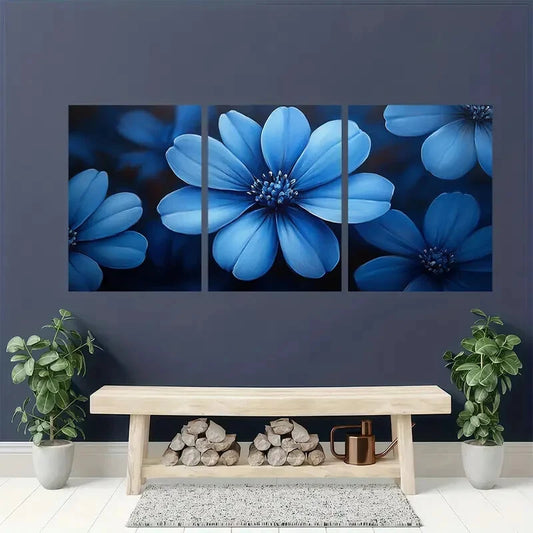 3pcs Chicory Flower Blue Flower Painting Metal Print Ready to Hang Art