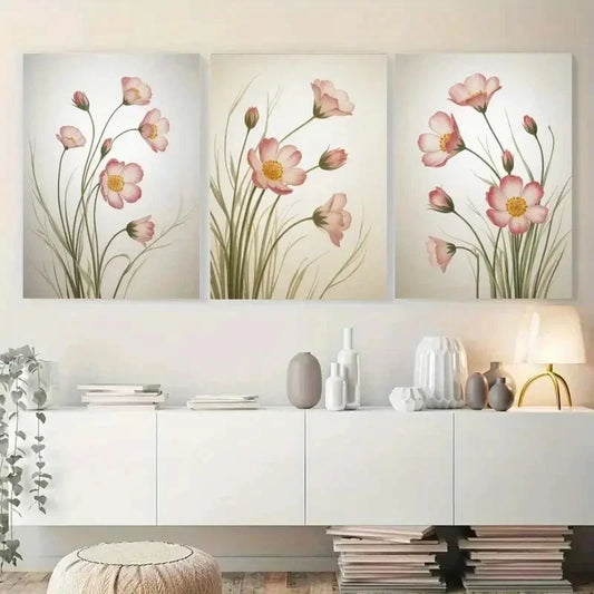 3pcs White Flower Calligraphy Wall Decor Metal Print Ready to Hang Art