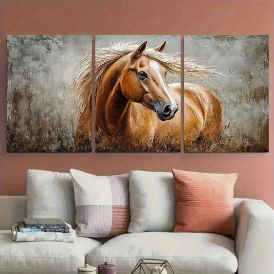 3pcs Neutral Stone Sculptural Equestrian Metal Print Ready to Hang Art