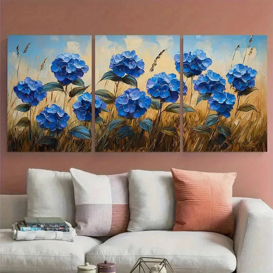3pcs Hydrangea Flowers Meadow Impasto Design Metal Print Ready to Hang Art