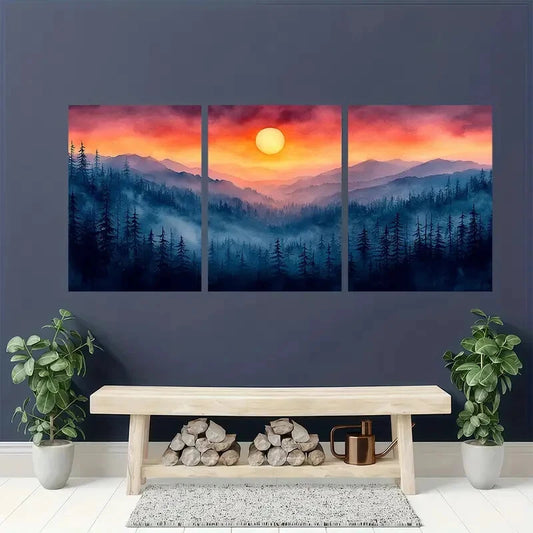 3pcs Watercolor Mountain Sunset Landscape Metal Print Ready to Hang Art
