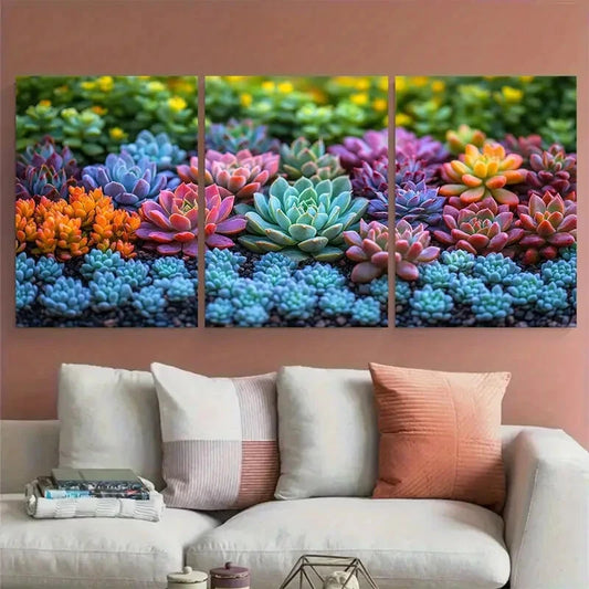 3pcs Vibrant Succulent Botanical Spiky Plant Metal Print Ready to Hang Art