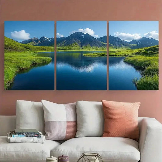 3pcs Alpine Highlands Sunlit Sky Metal Print Ready to Hang Art
