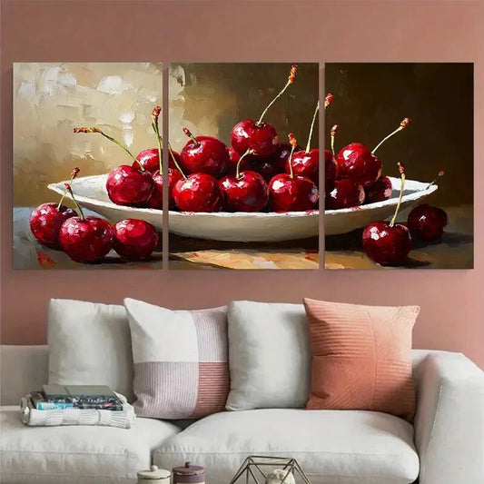 3pcs Cherry Fruits Impasto Illustration Metal Print Ready to Hang Art