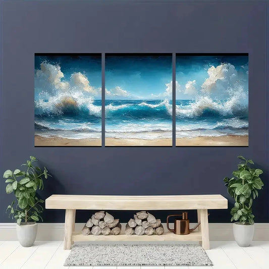 3pcs Coastline Ocean Waves & Beach Scenery Metal Print Ready to Hang Art