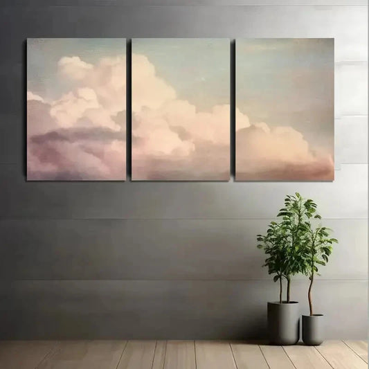 3pcs Vintage Pastel Colors Clouds Metal Print Ready to Hang Art