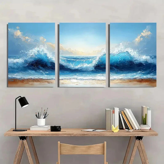 3pcs Vibrant Blue Sea Waves Abstract Beach Scene Metal Print Ready to Hang Art