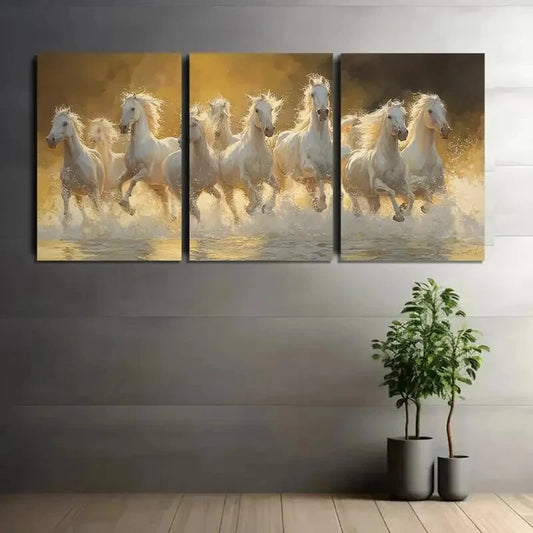 3pcs Galloping Horses Running the Sun Metal Print Ready to Hang Art