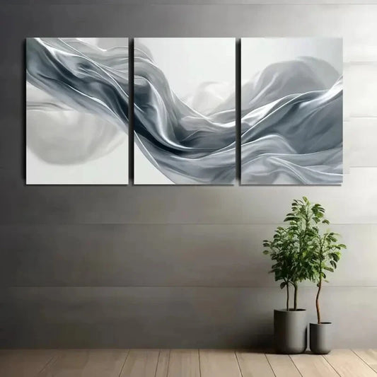 3pcs Gray and Silvery Abstract Shapes Metal Print Ready to Hang Art