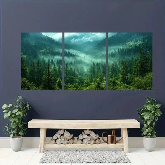 3pcs Misty Forest Nature Landscape Art Print Metal Print Ready to Hang Art