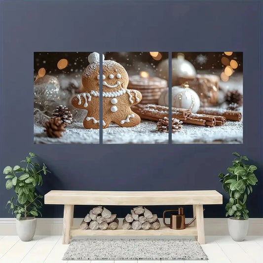 3pcs Vintage Christmas Gingerbread House Metal Print Ready to Hang Art