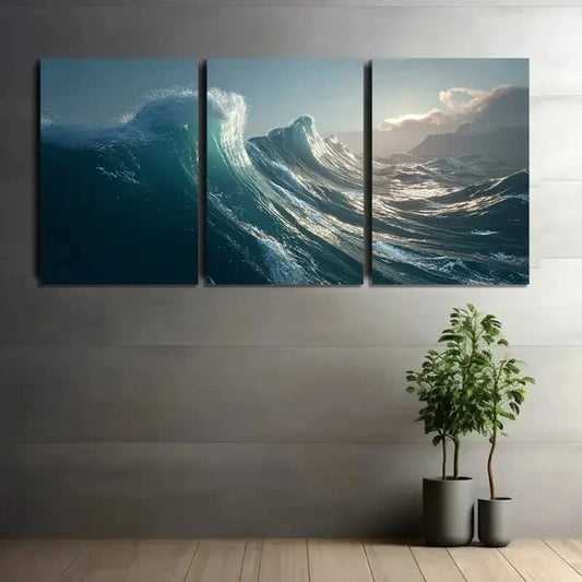 3pcs Massive Wave Ocean Peaks Metal Print Ready to Hang Art