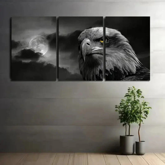 3pcs Black and White Eagle Yellow Eyes Metal Print Ready to Hang Art