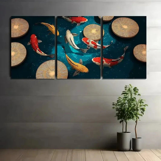 3pcs Colorful Koi Fish Swimming Metal Print Ready to Hang Art
