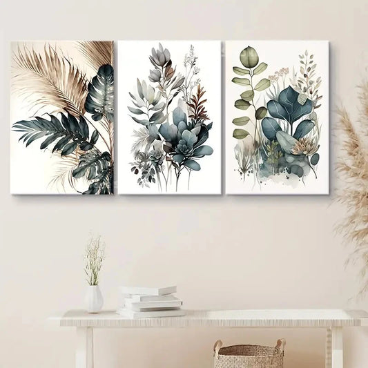3pcs Watercolor Floral Art Decorative Painting Metal Print Ready to Hang Art