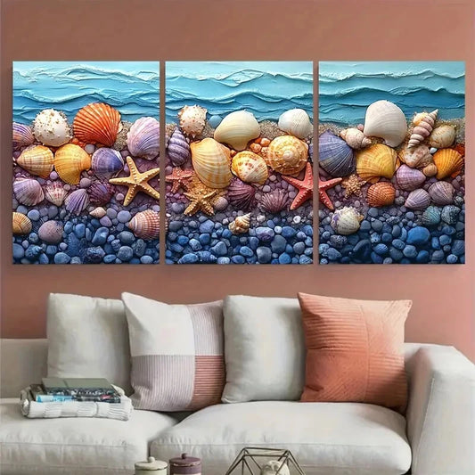3pcs Vivid Vibrant Colourful Shades Of Seashells Metal Print Ready to Hang Art