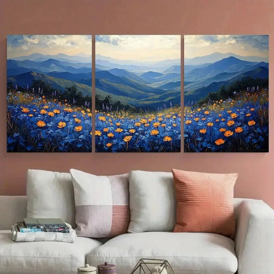 3pcs Blue Ridge On North Carolina Impasto Design Metal Print Ready to Hang Art