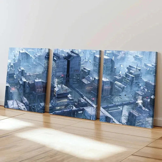 3pcs Future City Japanese Classic Anime Wall Art Set Canvas Framed 40x60cm - High Quality Print 100% Australian Made Wall Canvas Ready to Hang