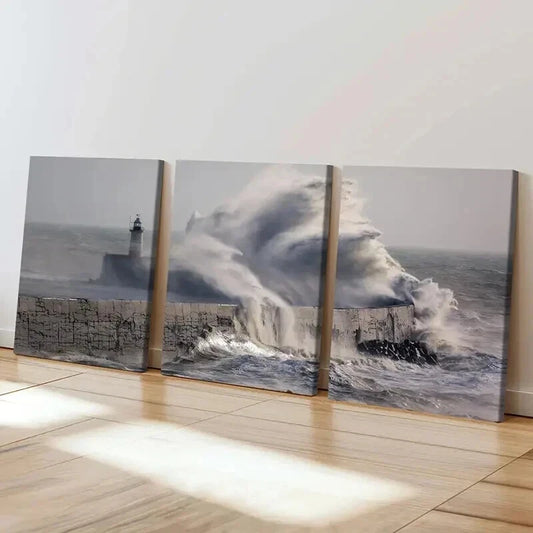 3pcs Pier Huge Waves Lighthouse Sea Wall Art Set Canvas Framed 40x60cm - High Quality Print 100% Australian Made Wall Canvas Ready to Hang