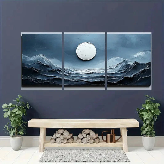 3pcs Blue & White Textured Minimalist Abstract Metal Print Ready to Hang Art