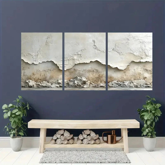 3pcs Minimalist Beige Textured Wall Art Metal Print Ready to Hang Art