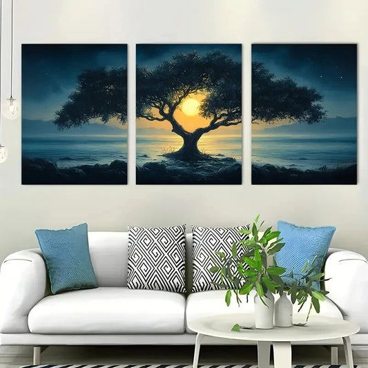 3pcs Tree In The Moonlight Cool Décor Perfect Wall Art Set Canvas Framed 40x60cm - High Quality Print 100% Australian Made Wall Canvas Ready to Hang
