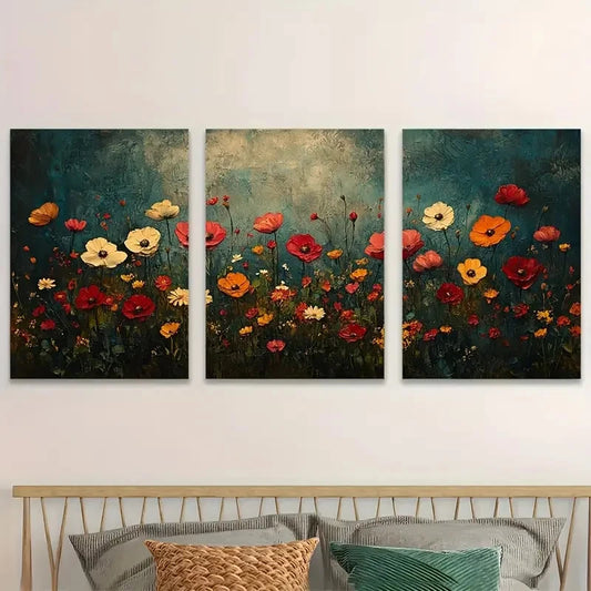 3pcs Moonlit Meadow Wildflower Paintings Metal Print Ready to Hang Art