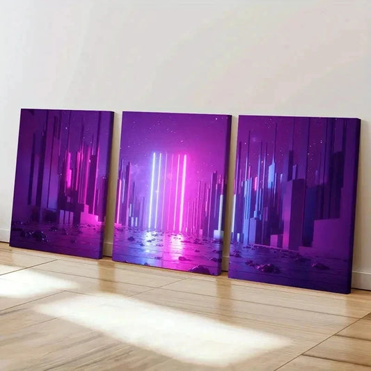 3pcs Neon Light Aesthetic Art Fantasy Cyberpunk Wall Art Set Canvas Framed 40x60cm - High Quality Print 100% Australian Made Wall Canvas Ready to Hang