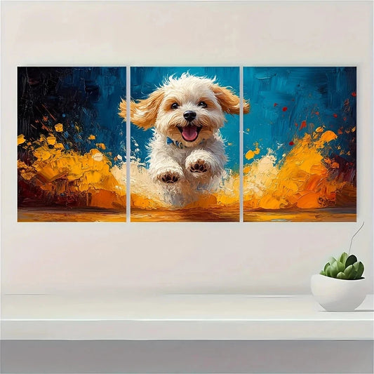 3pcs Colorful Maltipoo Jumping Dog Pet Abstract Metal Print Ready to Hang Art