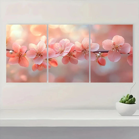 3pcs Cherry Blossom Romantic Light Pink Metal Print Ready to Hang Art