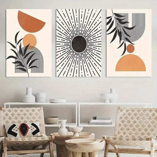 3pcs Geometric Lines Botanical Wall Art Painting Metal Print Ready to Hang Art