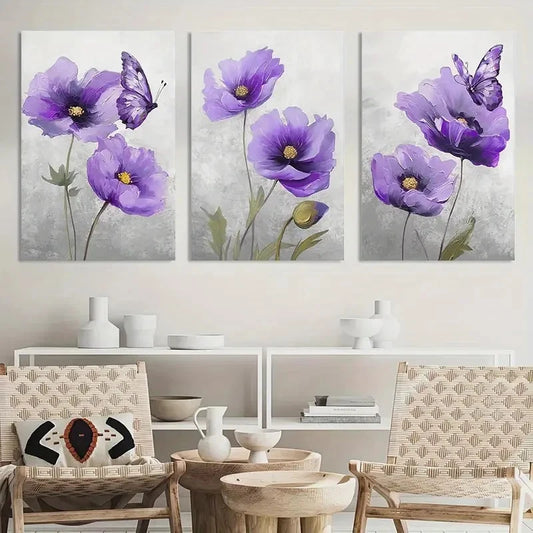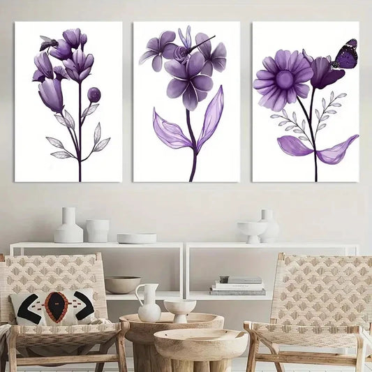 3pcs Transparent Floral with Butterfly Painting Metal Print Ready to Hang Art