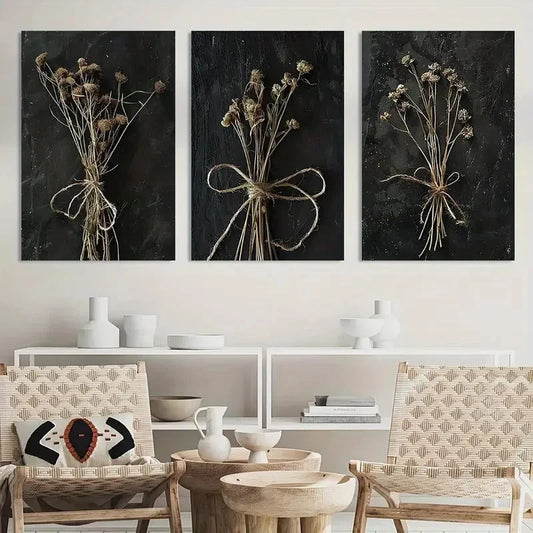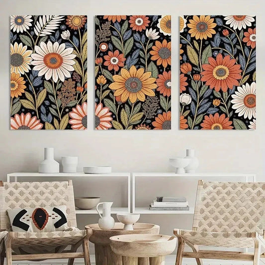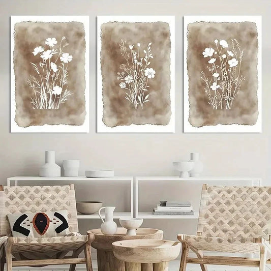 3pcs Minimalist Botanical Boho Wildflower Metal Print Ready to Hang Art
