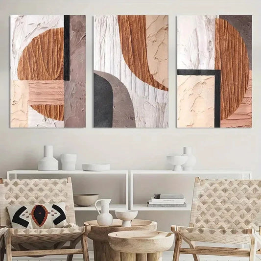 3pcs Painting Abstract Neutral Metal Print Ready to Hang Art