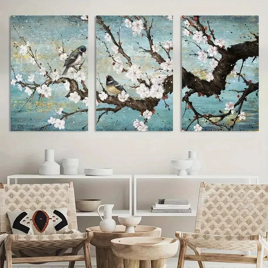 3pcs Traditional Painting Plum Blossom & Birds Metal Print Ready to Hang Art