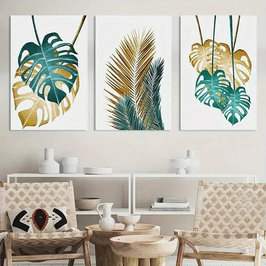 3pcs Painting Tropical Leaves Metal Print Ready to Hang Art
