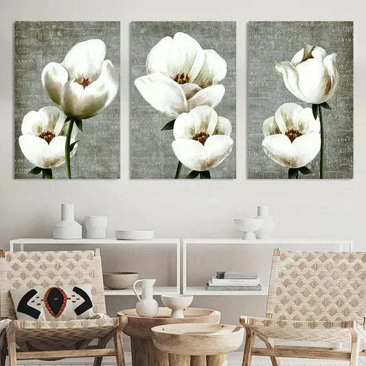 3pcs Vintage Style White Flowers Wall Painting Metal Print Ready to Hang Art
