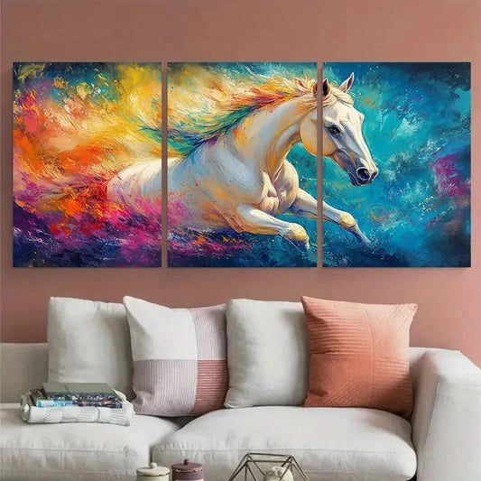 3pcs Vibrant Equine with Colorful Highlights Metal Print Ready to Hang Art