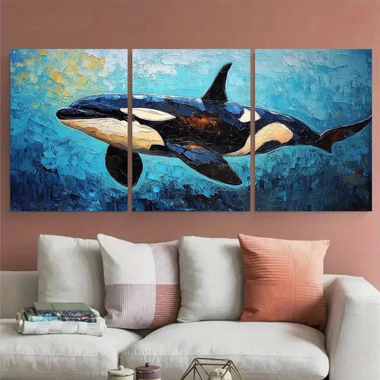 3pcs Orca Animal Whale Impasto Design Metal Print Ready to Hang Art