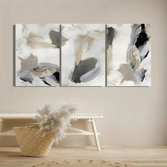 3pcs Neutral Beige & Black Abstract Design Metal Print Ready to Hang Art