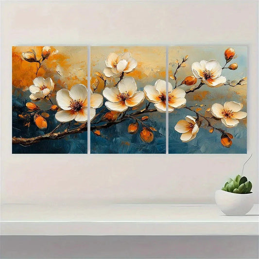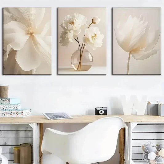 3pcs Beige Pure Flowers Floral Wall Art Metal Print Ready to Hang Art
