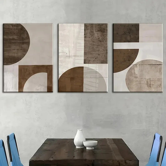 3pcs Design in Shades of Brown Beige & White Metal Print Ready to Hang Art