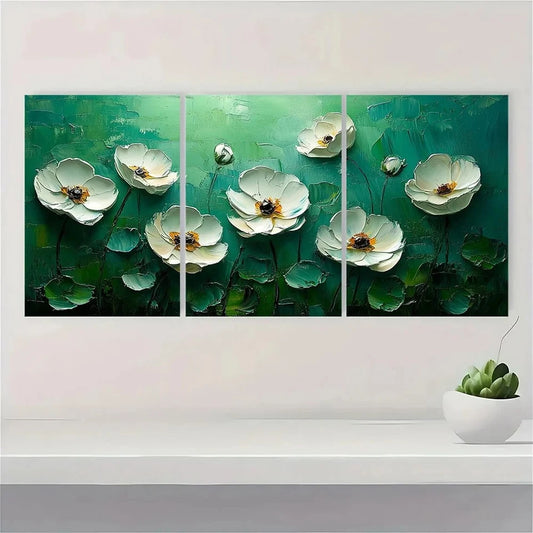 3pcs Lotus Modern Abstract Painting Metal Print Ready to Hang Art
