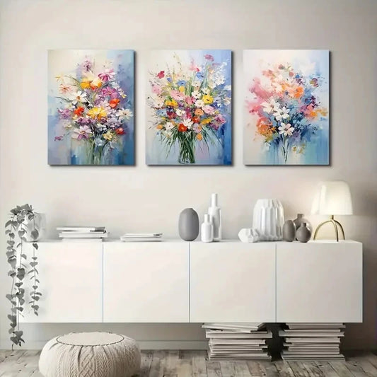 3pcs Exotic Flowers Abstract Painting Metal Print Ready to Hang Art