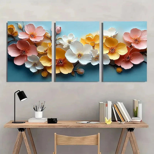 3pcs Pastel Pink Yellow White Blossoms Metal Print Ready to Hang Art