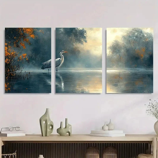 3pcs Autumn Forest & Mountain Landscape Painting Metal Print Ready to Hang Art