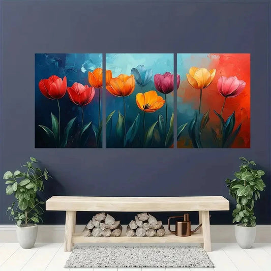 3pcs Vibrant Colorful Tulip Abstract Painting Metal Print Ready to Hang Art