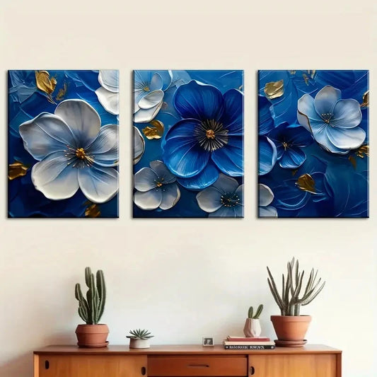 3pcs Abstract Blue And White Floral Designs Metal Print Ready to Hang Art